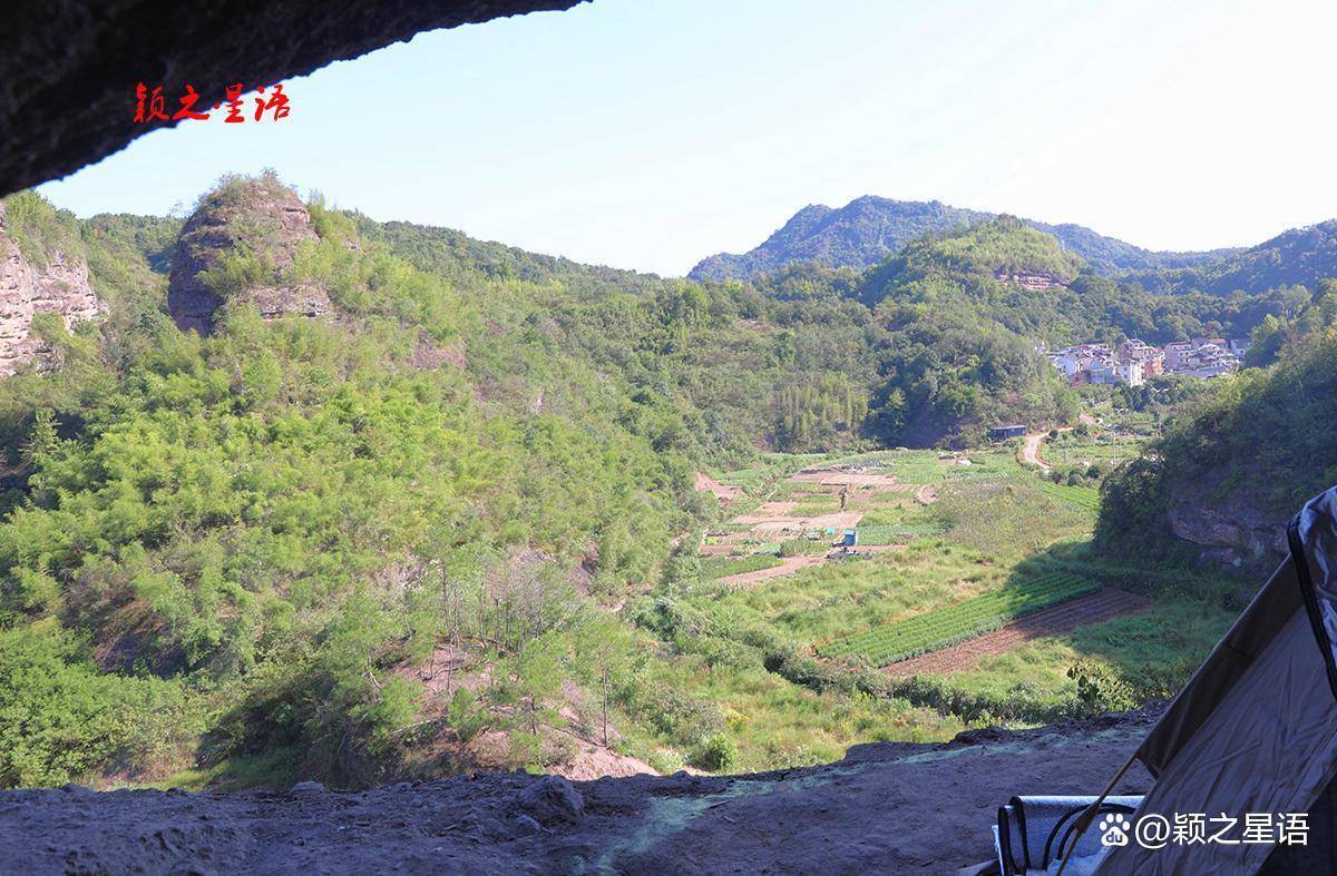 岩屋即为空中廊道的尽头,必须原路返回,从入口处还可以继续登山而上,到山顶眺望这一带的丹霞地貌,奇山秀水,令人心旷神怡。