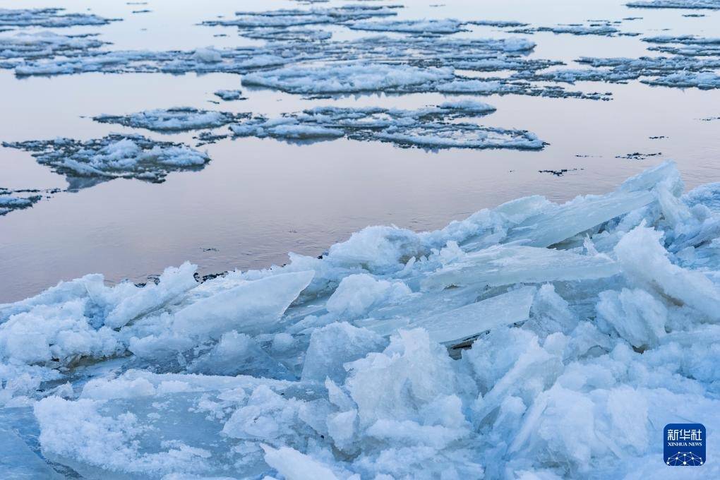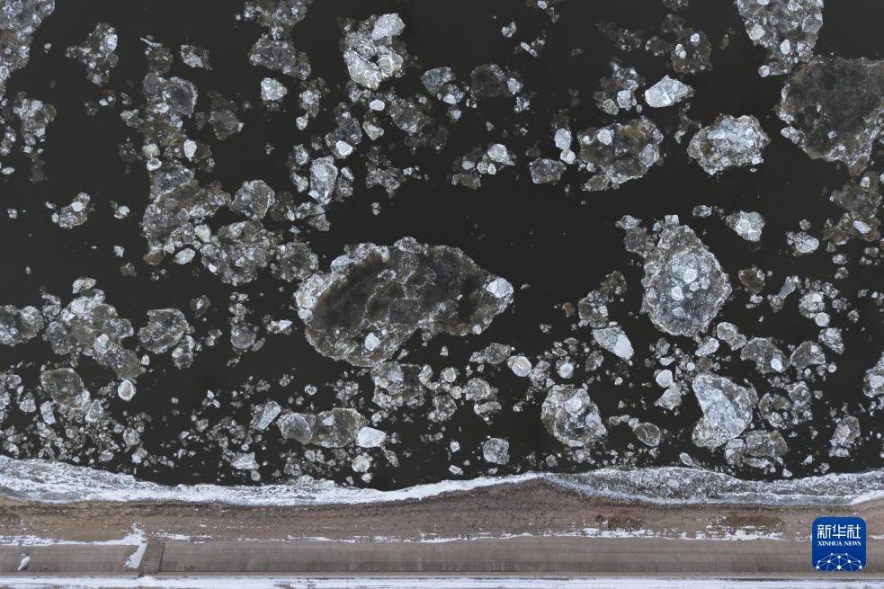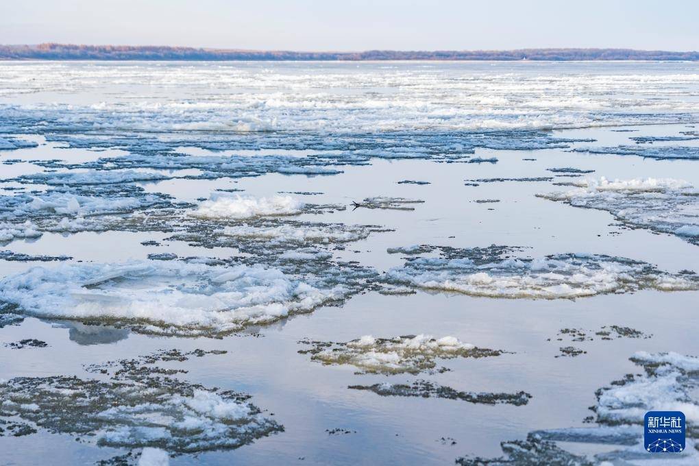 r受近期降温影响,黑龙江嘉荫段已进入流冰期,浮冰顺流而下,如一朵朵冰莲绽放在宽阔江面之上,呈现出封江前壮阔的自然景观。