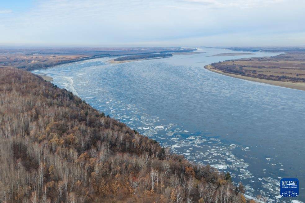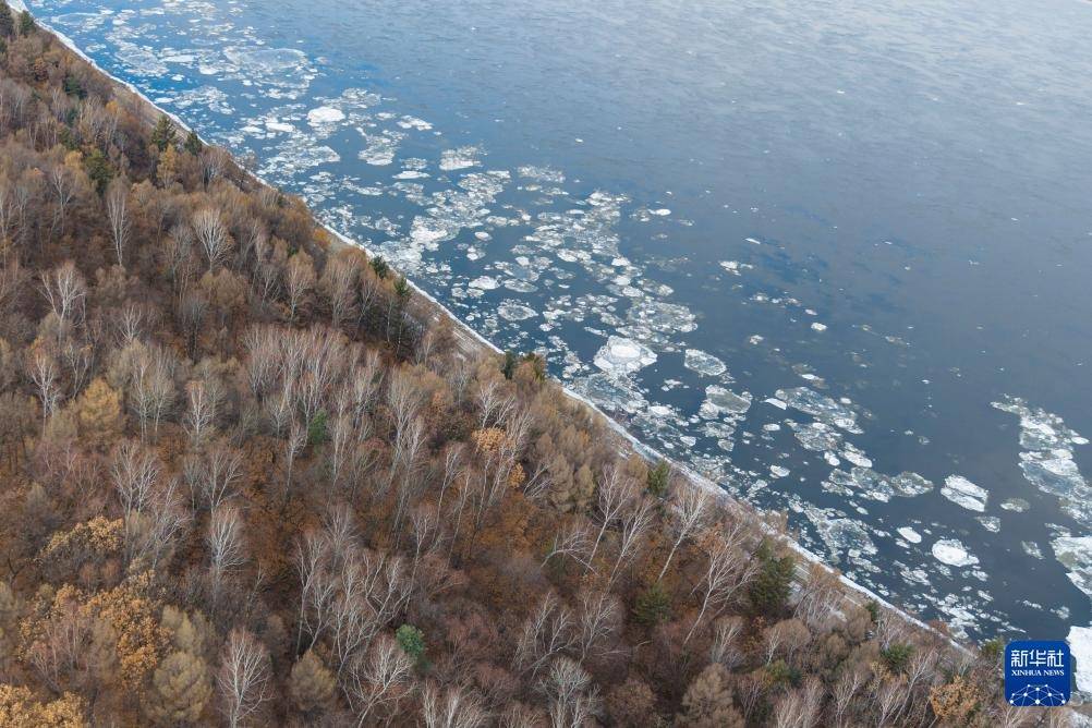 这是11月5日拍摄的处于流冰期的黑龙江嘉荫段(无人机照片)。